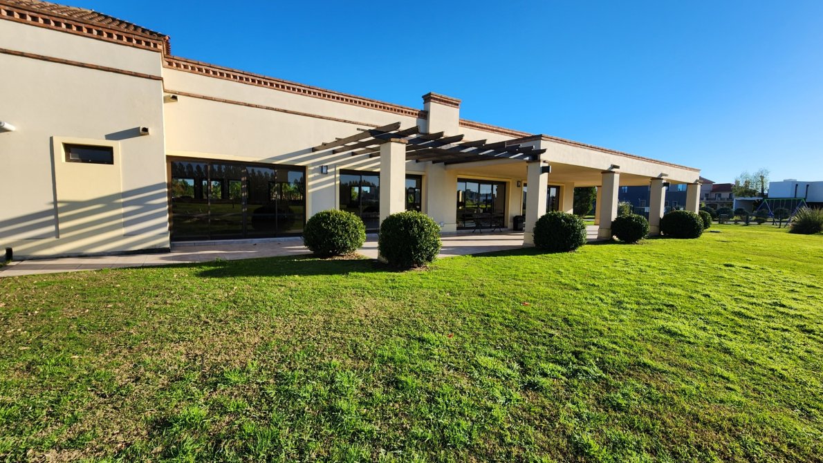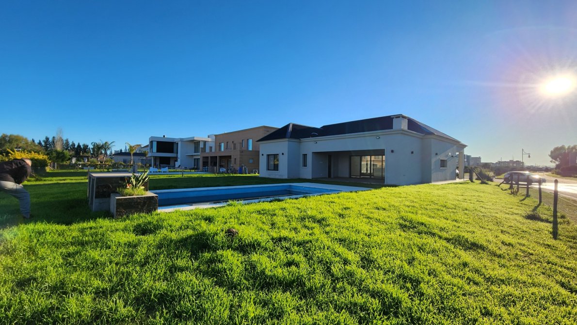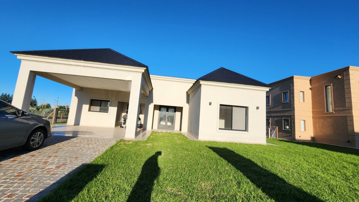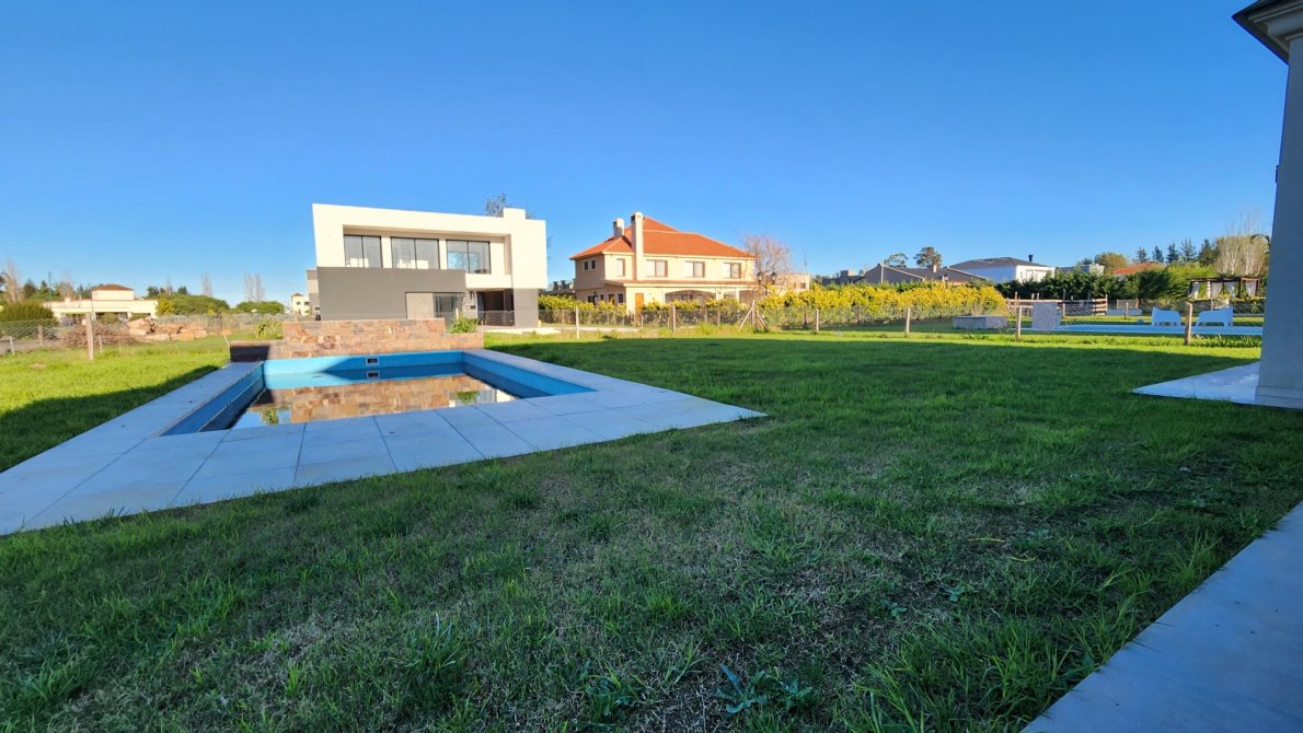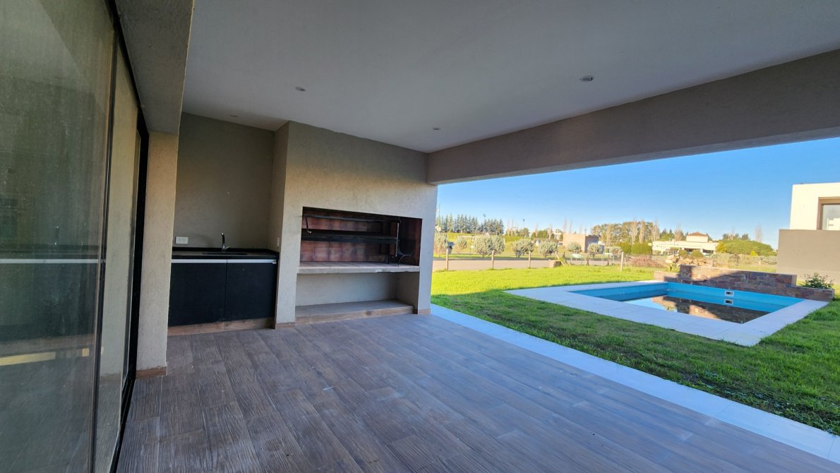 Exelente Ubicacion en el Barrio El Rebenque' Consolidado- HERMOSA CASA A ESTRENAR- COCHERA PARA hasta CUATRO VEHICULOS, LIVING COMEDOR, COCINA CON AMOBLAMIENTO COMPLETO, ANAFE Y HORNO, HELADERA CON FREEZER- MESA CON 6 SILLAS-TRES DORMITORIOS CON PLACARDS e INTERIORES, UNO DE ELLOS EN SUITE CON VESTIDOR, BAÑO COMPLETO CON TODOS SUS ACCESORIOS, TOILETTE DE RECEPCION, LAVADERO CON LAVARROPAS, GALERIA CUBIERTA Y CERRADA CON PARRILLA Y MESADA CON MUEBLE BAJO, PISCINA CON SUS FILTROS, PARQUE- CALEFACCION POR RADIADORES- AGUA CALIENTE CALDERA MURAL- con Aire Acondicionado en todos los ambientes- POSEE MEDIDOR DE GAS Y LUZ- El Barrio posee canchas de Tennis (3 polvo de ladrillo, 2 rápidas). Canchas de fútbol 11, Jockey y Voley. Club House con pileta para adultos y niños. Pileta cubierta climatizada. Spa y Sauna. Gimnasio. Jacuzzi. SUM para fiestas y reuniones en área deportiva. Senda aeróbica. Plaza de juegos para niños. Seguridad- Sala para monitoreo centralizado de seguridad. Senda perimetral de seguridad. SE ALQUILA AMOBLADA- ALQUILER HASTA 6 PERSONAS -Minimo 4 Personas Minimo 7 Dias- ¨por día u$s50--