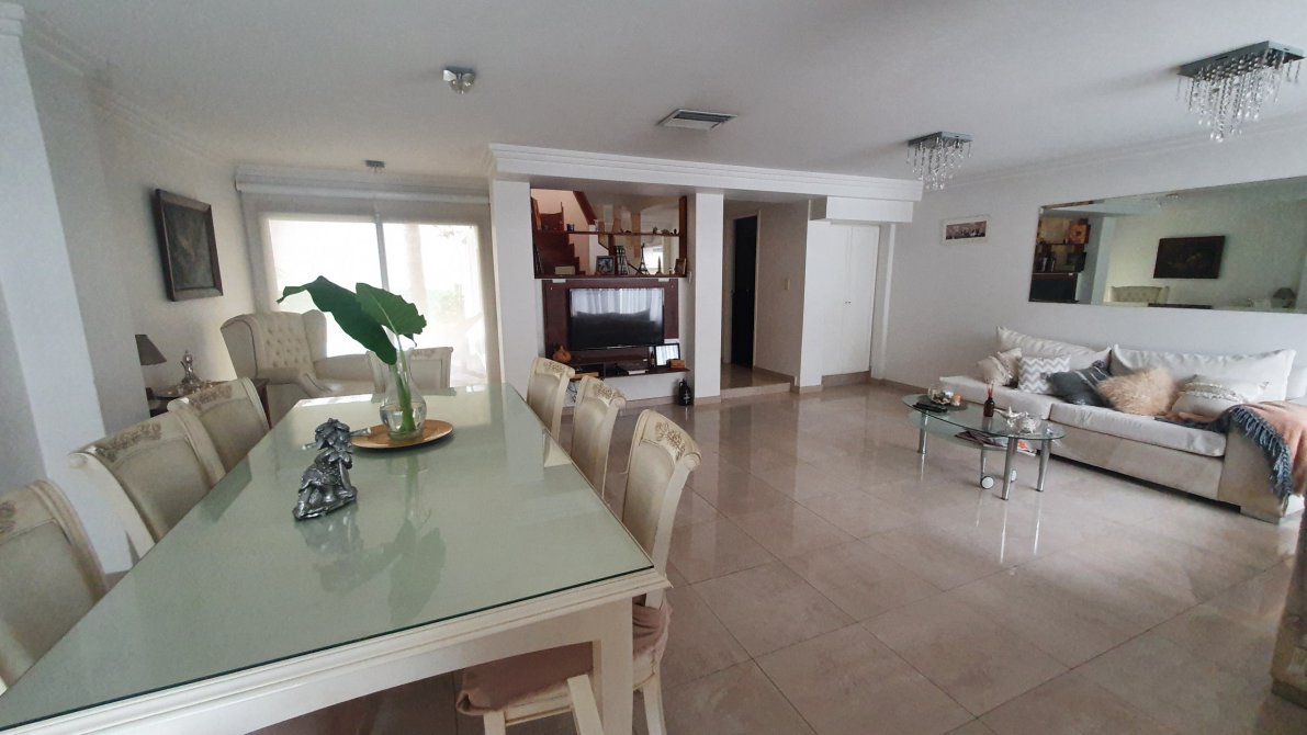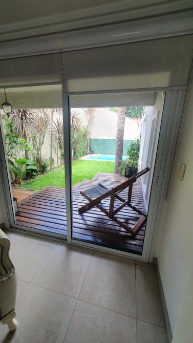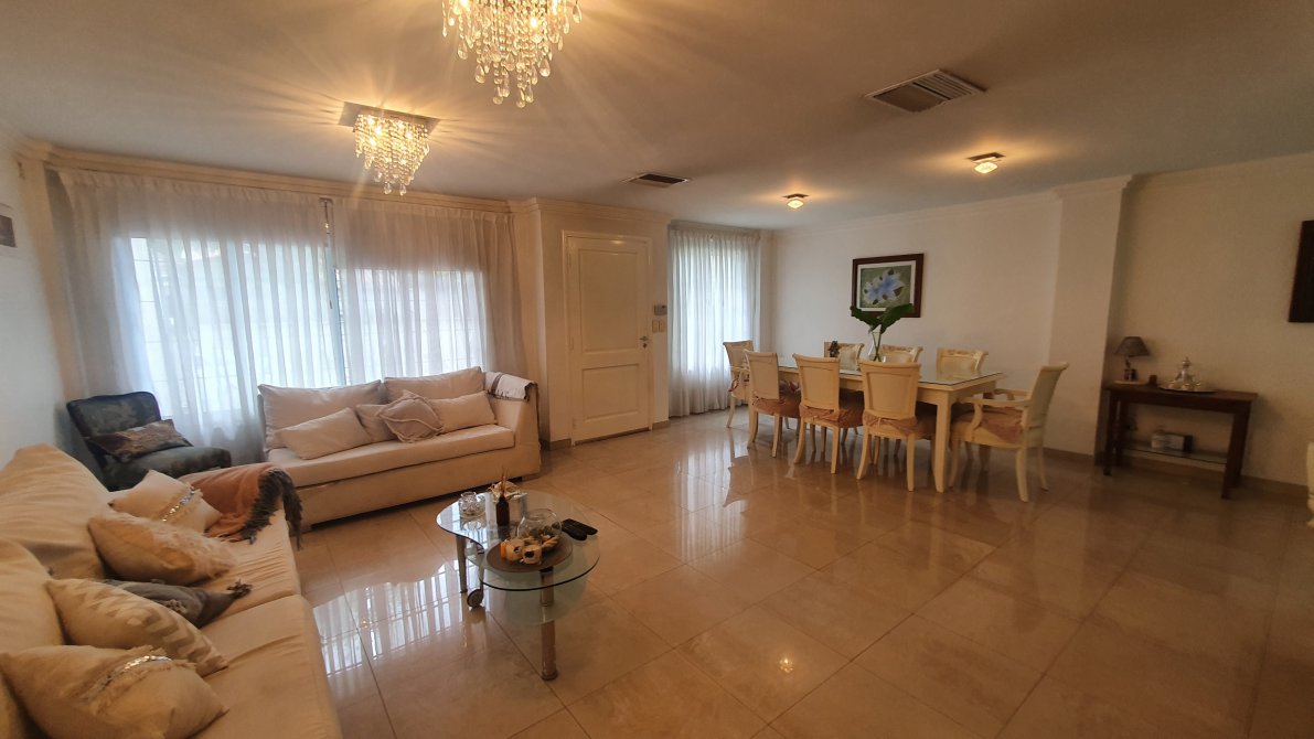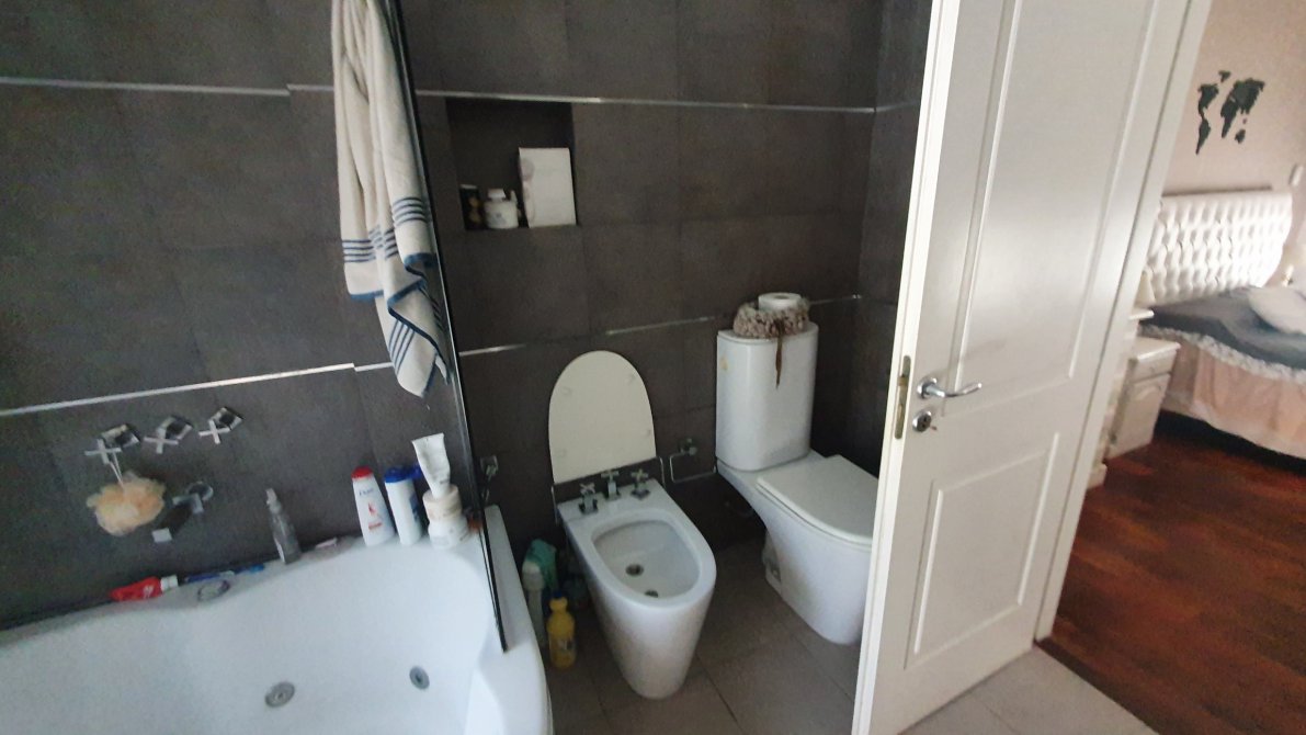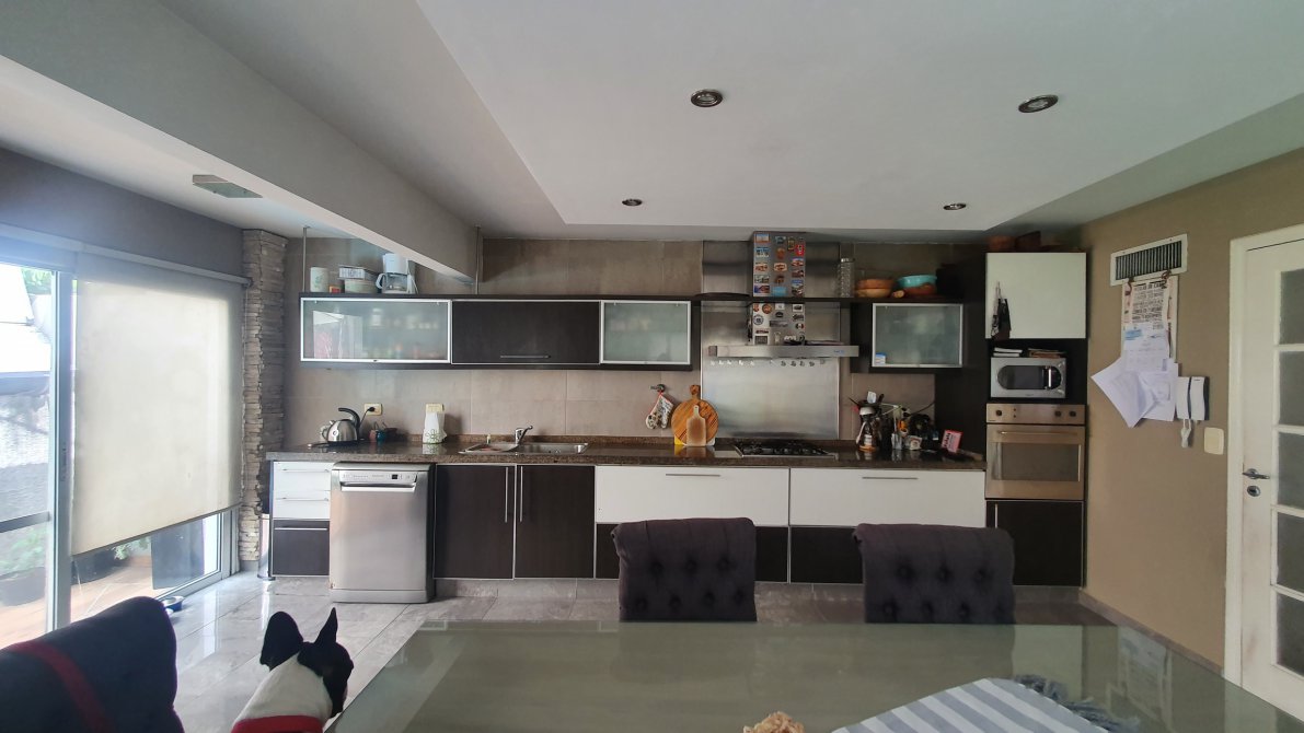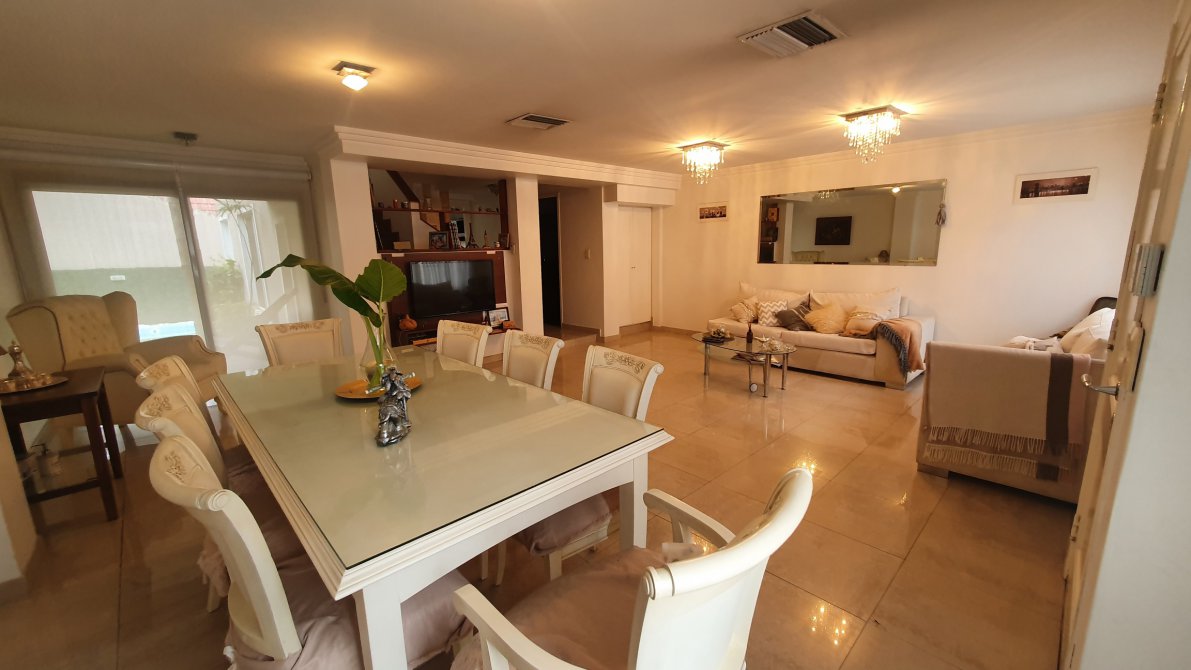 EXCELENTE PROPIEDAD - Rejas y jardín al frente - Chalet en dos plantas - Entrada por escalinata a hall de acceso - Portón automático - Entrada de auto - garage cubierto para dos autos - PB : Gran living comedor con piso de porcelanatto - Placard de cortesía -Toilette de recepción - Escalera a planta alta - Salida a deck exterior - Play room/ quincho con salida al contrafrente - Pasillo distribuidor a cocina y escalera a garage - Cocina comedor equipada completa con muebles bajo y sobremesada - anafe - horno empotrado y campana extractora - Salida a patio con parrilla - Fondo libre con piscina - PA: pasillo distribuidor - 3 dormitorios con baño en suite - principal con bañera de hidromasaje y salida a terraza - Subsuelo en medio nivel lavadero, habitación de servicio y salida al fondo -